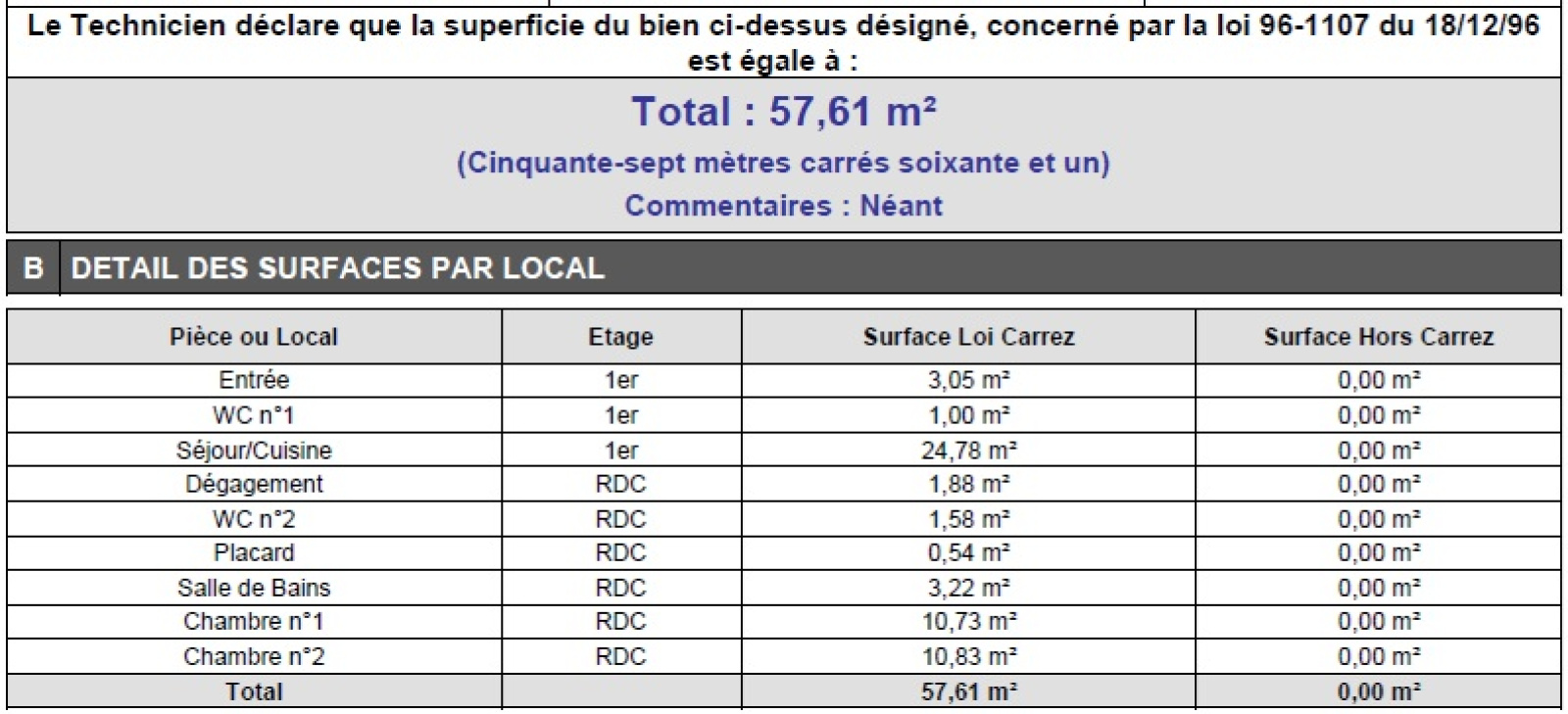 - Surface 57,61 m²